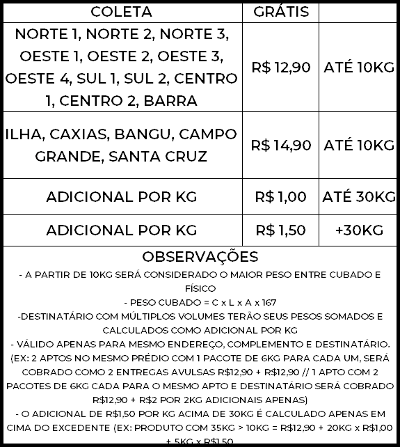 – Coletas realizadas entre 12h e 14h (Tentaremos manter horário padrão para o mesmo endereço, ou avisar com antecedência em caso de alteração)